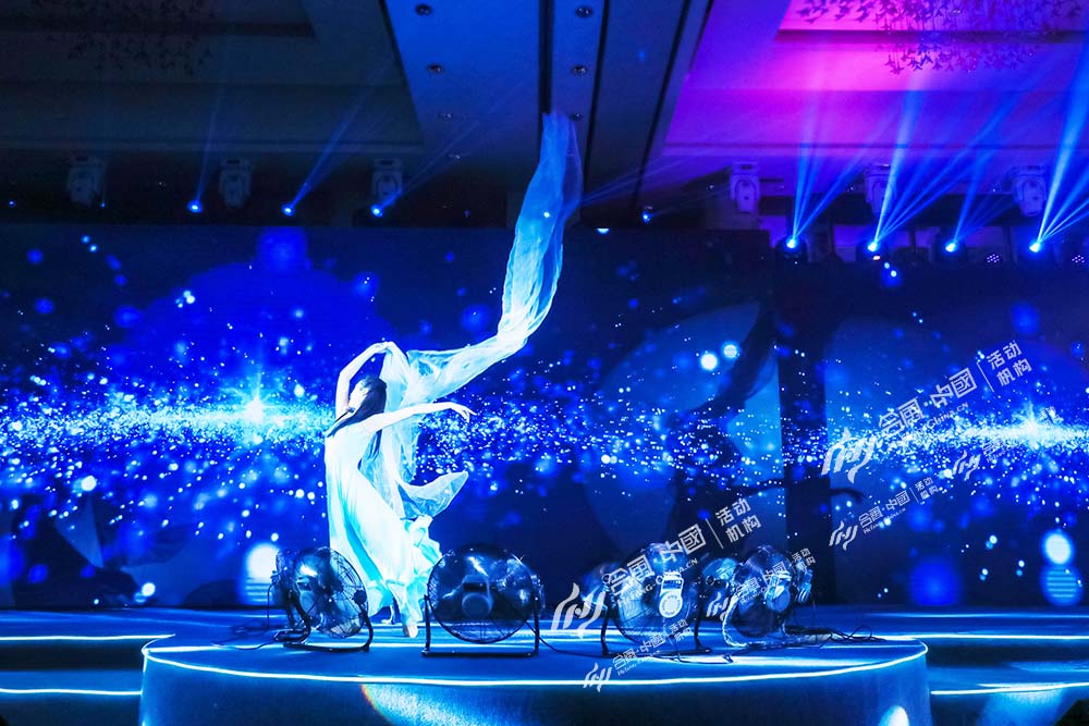 「合風(fēng)演出」廣東省廣州市演藝公司演出團(tuán)提供的創(chuàng)意表演節(jié)目《輕紗曼舞》《紗之曼》現(xiàn)代舞,演出服務(wù)區(qū)域有佛山珠海中山東莞。輕紗曼舞(時長:3分鐘、表演人數(shù):1人),舞者隨著風(fēng)起舞,伴隨著音樂的舒緩緊湊,舞者揮動著輕紗與韻共舞,細(xì)膩的舞姿靈動的輕紗配以高雅悠揚(yáng)的音樂,變幻淋漓的燈光,展現(xiàn)出極大的觀賞性。矩陣式的風(fēng)扇形成的穩(wěn)定氣流,讓絲質(zhì)布料自由的搖曳在風(fēng)扇所圍合的范圍之內(nèi),它們時而舒展、時而緊縮、時而疏離、時而聚合,那散發(fā)的輕盈與曼妙與舞者在隨之舒展而唯美的肢體語言,讓他們之間的配合顯示天衣無縫,是一場動人的舞蹈。營造出一種樂觀向上、勇往直前、自由的意境。